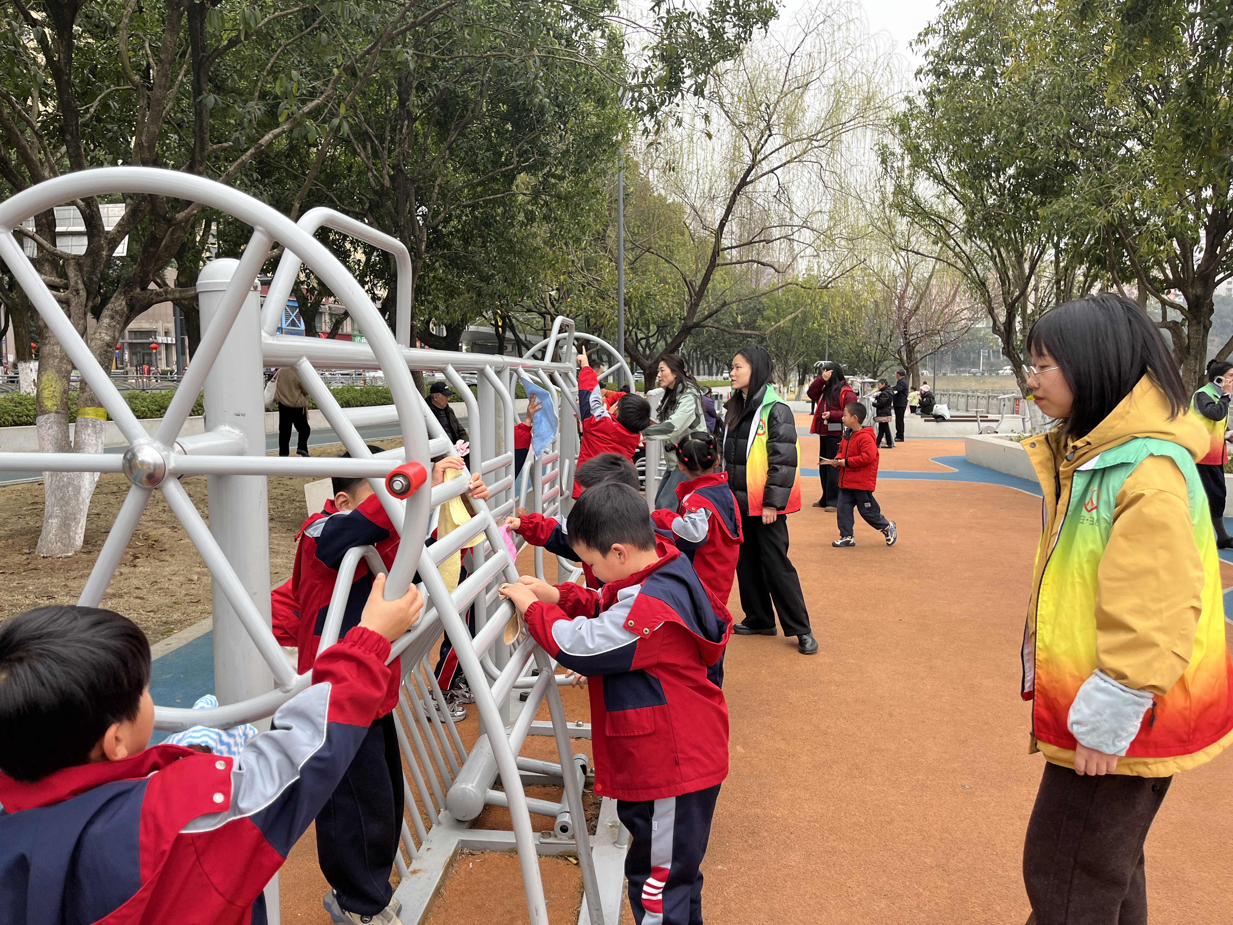活动现场,孩子们在老师和兴安社区志愿者们的带领下走出课堂,来到集锦桥健身活动区,化身“雷锋服务队”。志愿者为孩子们讲解垃圾分类知识,让大家深刻认识到环保的重要性。随后,孩子们迅速行动起来,用稚嫩的小手认真擦拭公园里的游乐设施,不放过任何一个角落,让设施焕然一新。孩子们还贴心地为在公园里辛勤劳动的环卫工人、保安叔叔等送上矿泉水,用纯真的笑容和温暖的话语表达敬意与感谢。