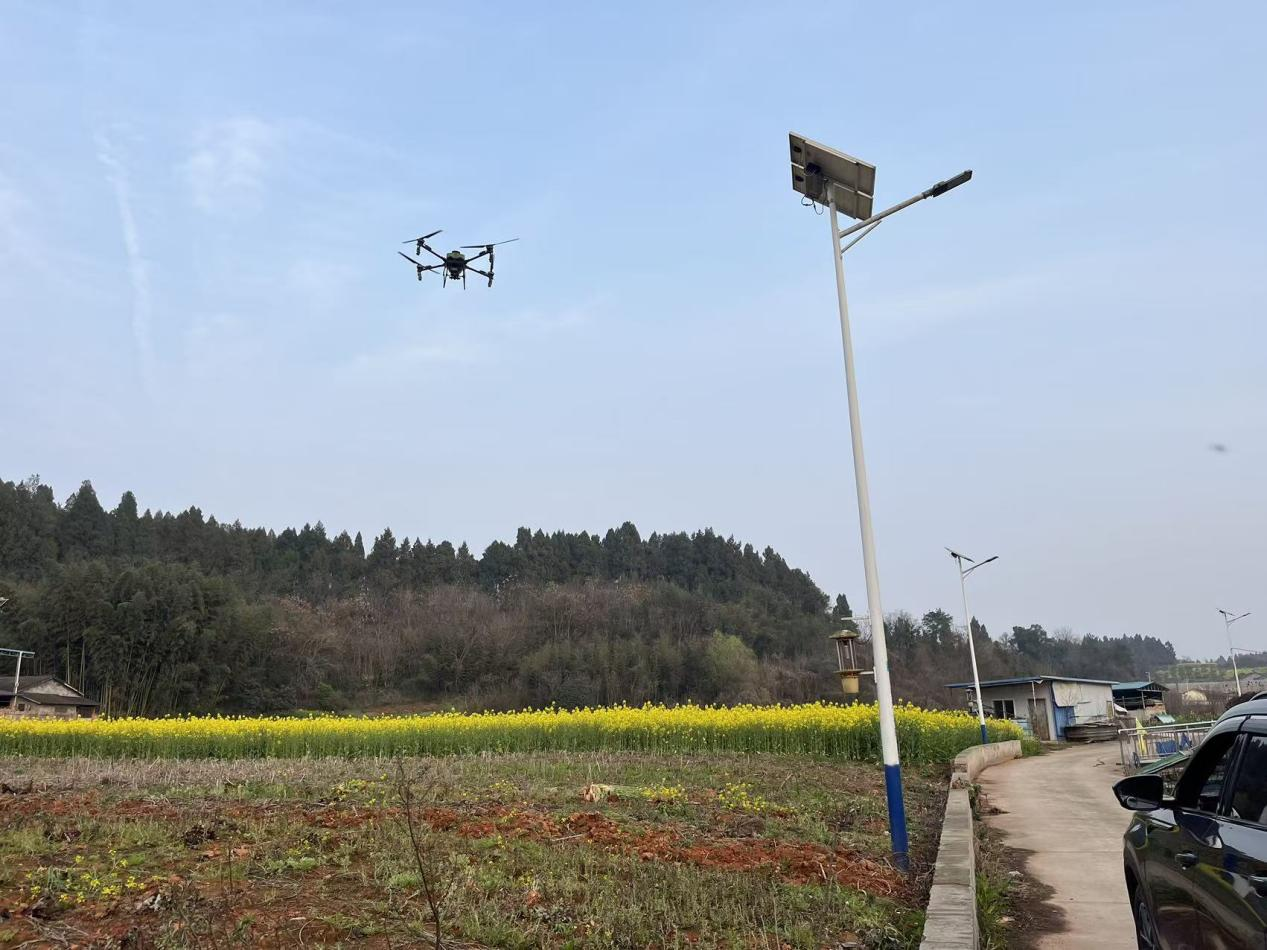 春回大地,油菜进入田间管理关键期,为抢抓农时、科学防控病虫害、促进油菜提质增产,近日,夷陵区农业农村局组织植保无人机统一防治作业队,正式进驻鸦鹊岭镇新场村开展油菜杀菌、施肥一体化飞防作业,为油料作物稳产增收筑牢“空中防护网”。