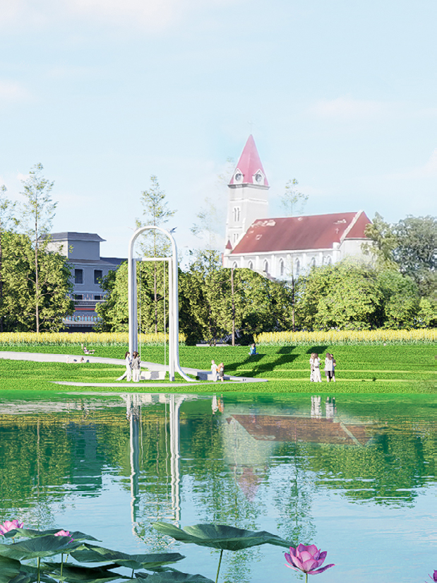4. 鹊影同心打卡点💕:设有荷塘、天主教堂,可合作婚纱摄影、情侣主题活动、节日祈福等。