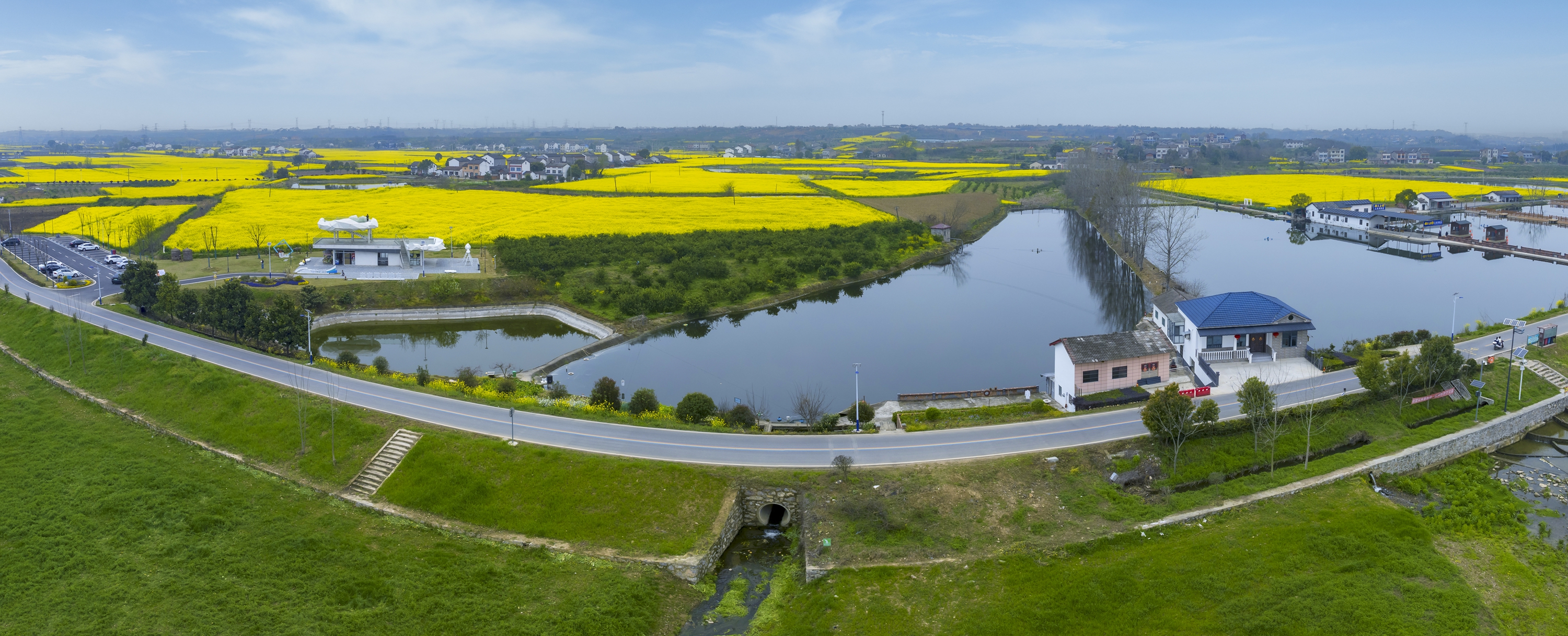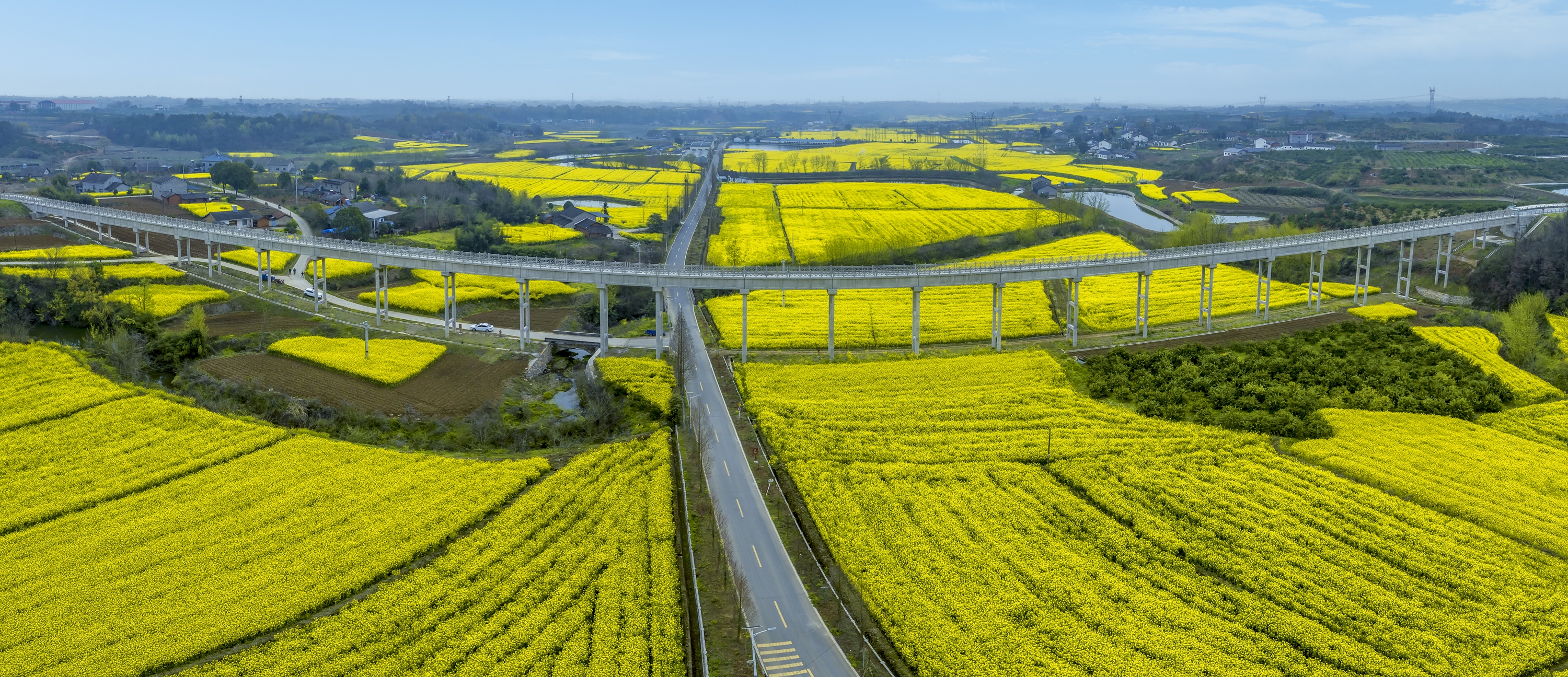 作为长江支流,玛瑙河经鸦鹊岭镇系统性生态整治后,水质显著提升,沿岸绿化廊道绿意盎然。当地通过“小田变大田”工程整合连片农田,千亩油菜田依托现代农业技术实现规模化种植,也为春日花海景观筑牢产业根基。