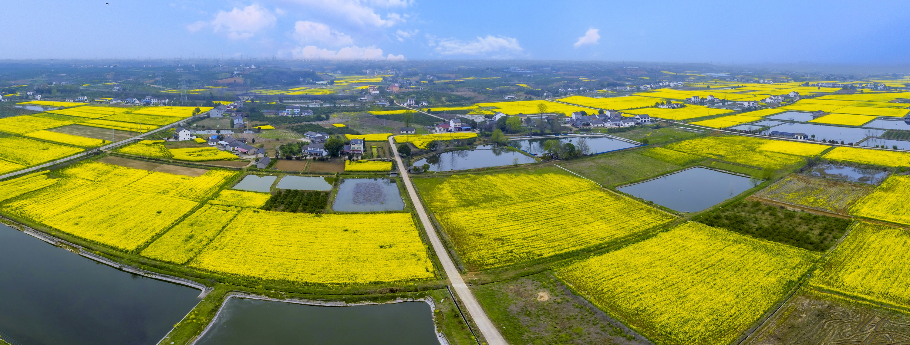阳春三月,雨过天晴,夷陵区鸦鹊岭镇的生态农田迎来油菜花盛花期。广袤田野间,金黄花海与澄澈玛瑙河交相辉映,错落的民舍点缀其间,构成一幅层次分明的田园画卷,尽显乡村生态之美。