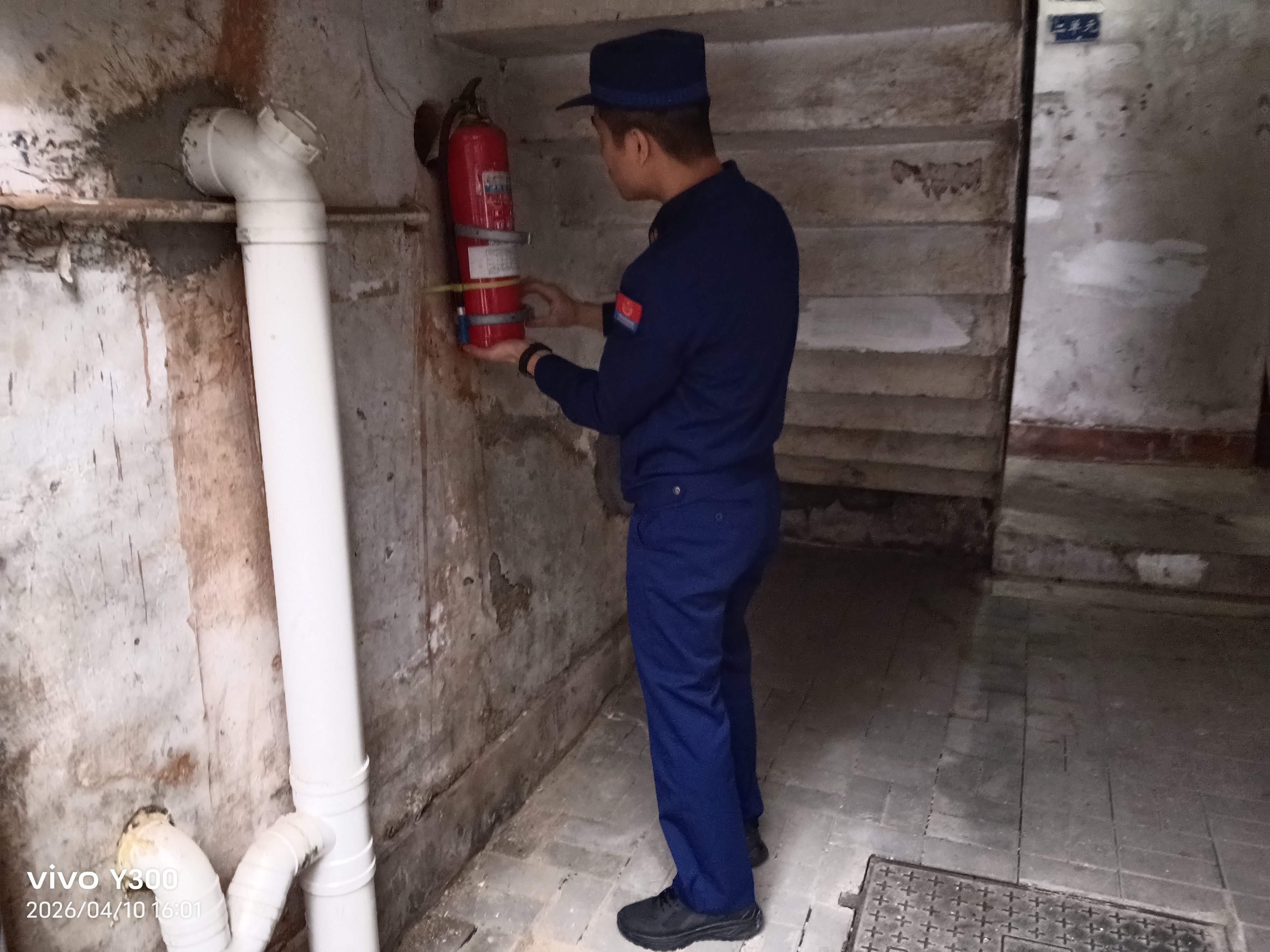 工作开展过程中,社区工作人员逐栋逐层开展拉网式排查,重点对居民楼内过期、失效、损坏的灭火器进行全面清理更换,同时规范张贴消防设施检查标识,完善器材巡检台账,确保各类消防器材随时处于完好有效状态。在排查整改的同时,工作人员同步向过往居民普及消防安全常识、讲解火灾防范与应急逃生技巧,进一步提升居民消防安全意识和自救互救能力。