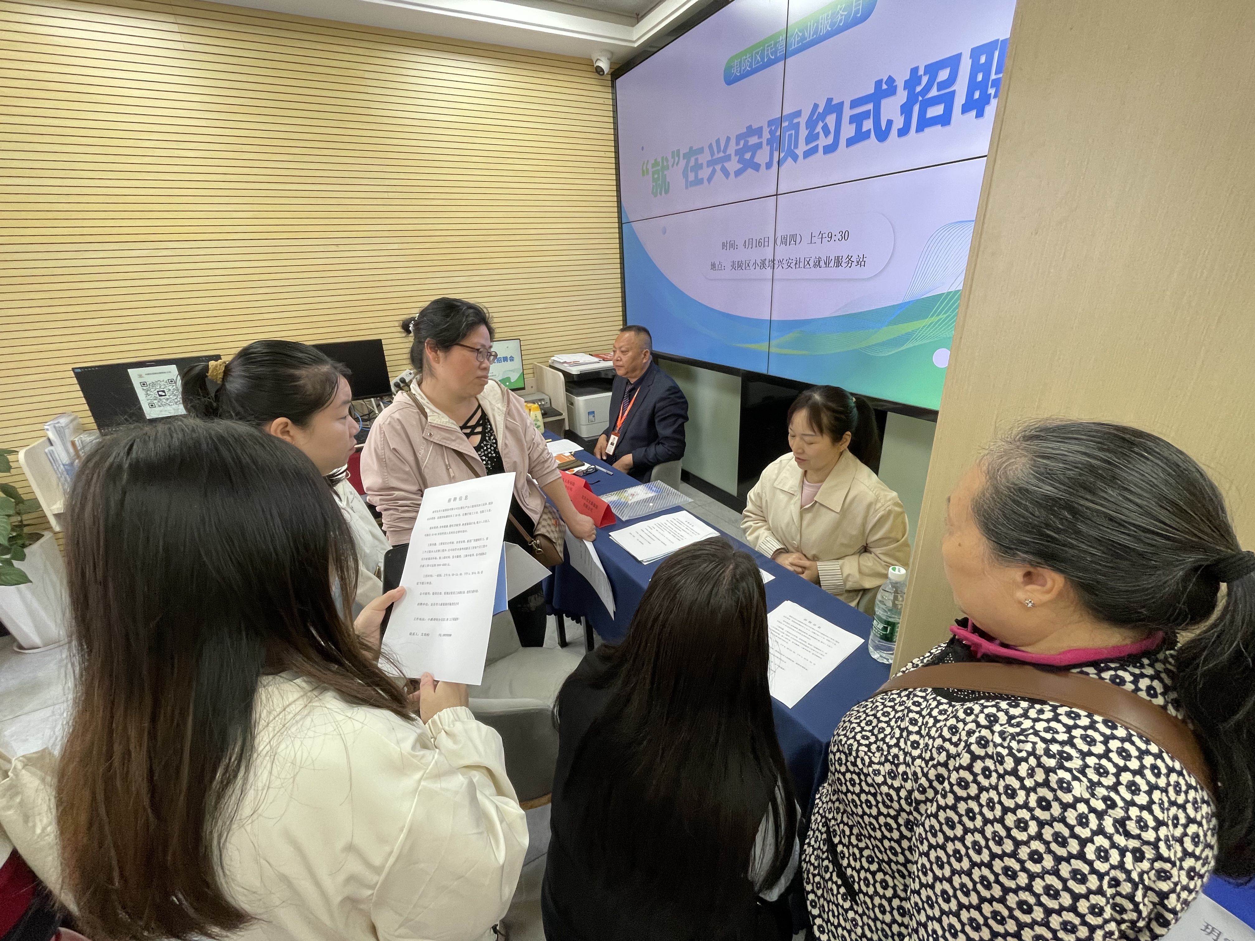 4月16日上午,“就”在兴安预约式招聘会在小溪塔街道兴安社区就业服务站顺利开展。此次招聘会聚焦周边宝妈、大龄人群等灵活就业者就近就业需求,同时助力辖区企业解决用工难题,搭建起供需对接桥梁。