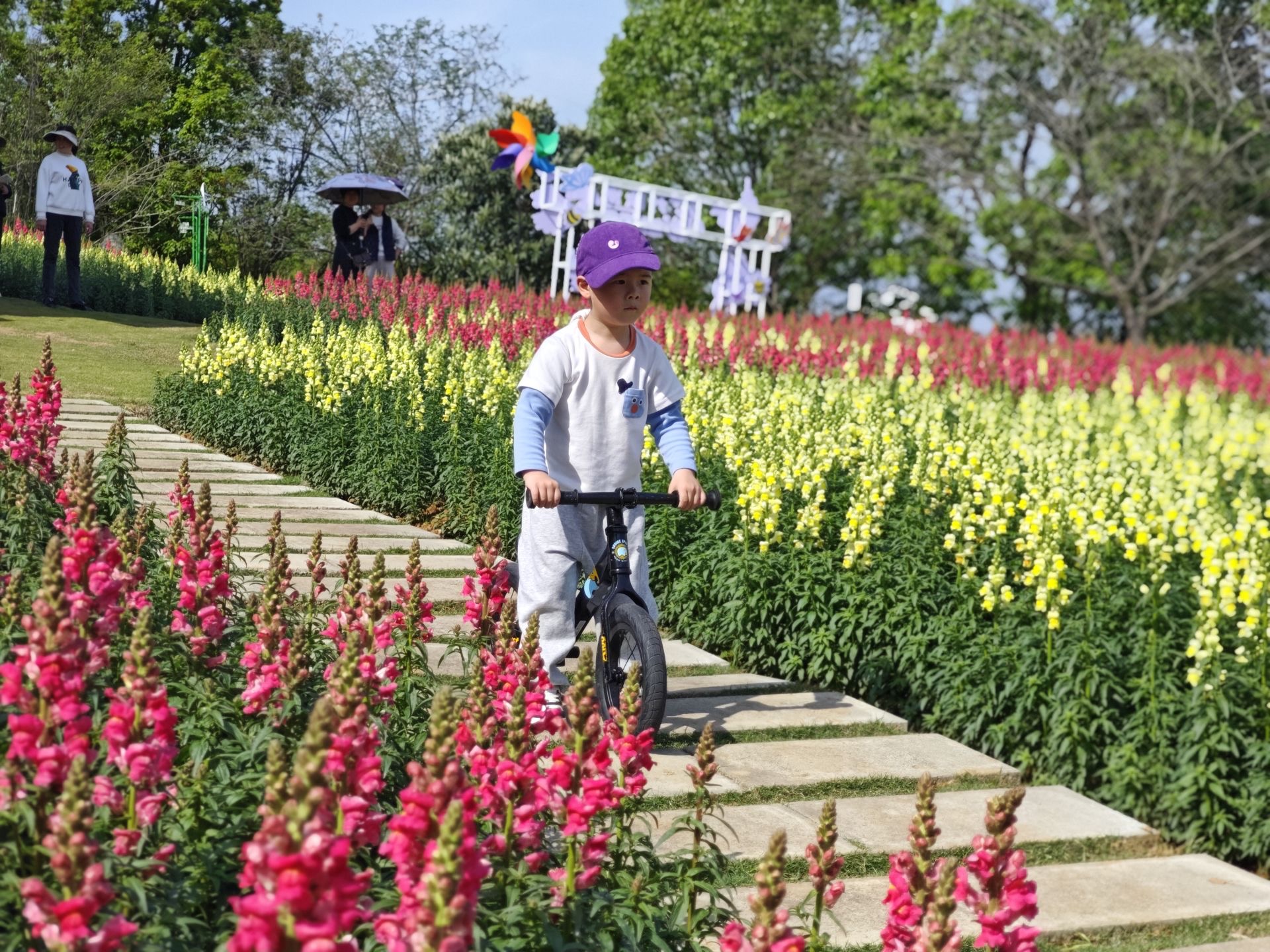 赛道上一路欢声笑语不断,满是暖暖的亲子温情。大手牵着小手,一家人结伴向前,有的在花海里边跑边闹,有的齐心协力闯关玩游戏,还有的停下脚步拍照留念,把春日美景和团圆幸福全都定格下来。