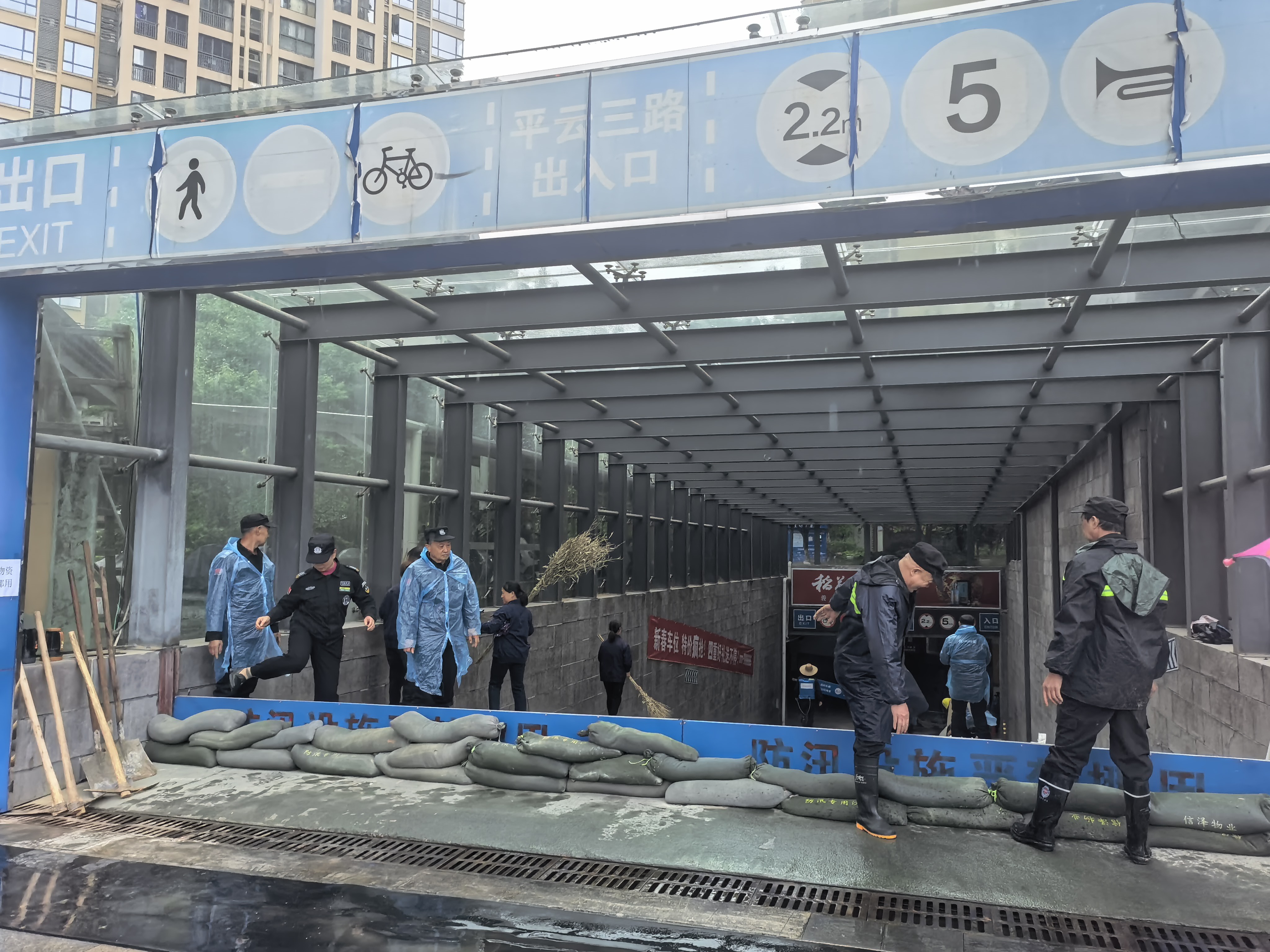 4月21日,东城试验区平云社区联合公园里小区物业组织开展防汛应急演练。