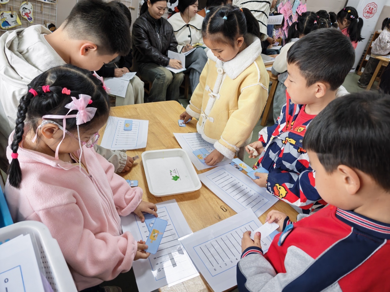 课堂上,教师们各显神通:童海燕老师的小班活动《妮妮的鞋子》,引导幼儿按颜色、图案、大小为鞋子配对,在游戏中培养幼儿的观察力和分类能力;屈安娟老师的中班活动《一起一起分类病》,借助生动有趣的绘本,让幼儿在故事中学习二维分类,并在生活中养成分类整理的好习惯;李佳老师带来的大班活动《节约时间小达人》,通过探索时间统筹方法,让幼儿学习合理利用等待时间,萌发时间管理意识;章莉老师的《勇闯火焰山之三借芭蕉扇》,则以经典的西游情境玩转四宫格数独,深受幼儿喜爱,让幼儿在挑战中锻炼逻辑思维能力。