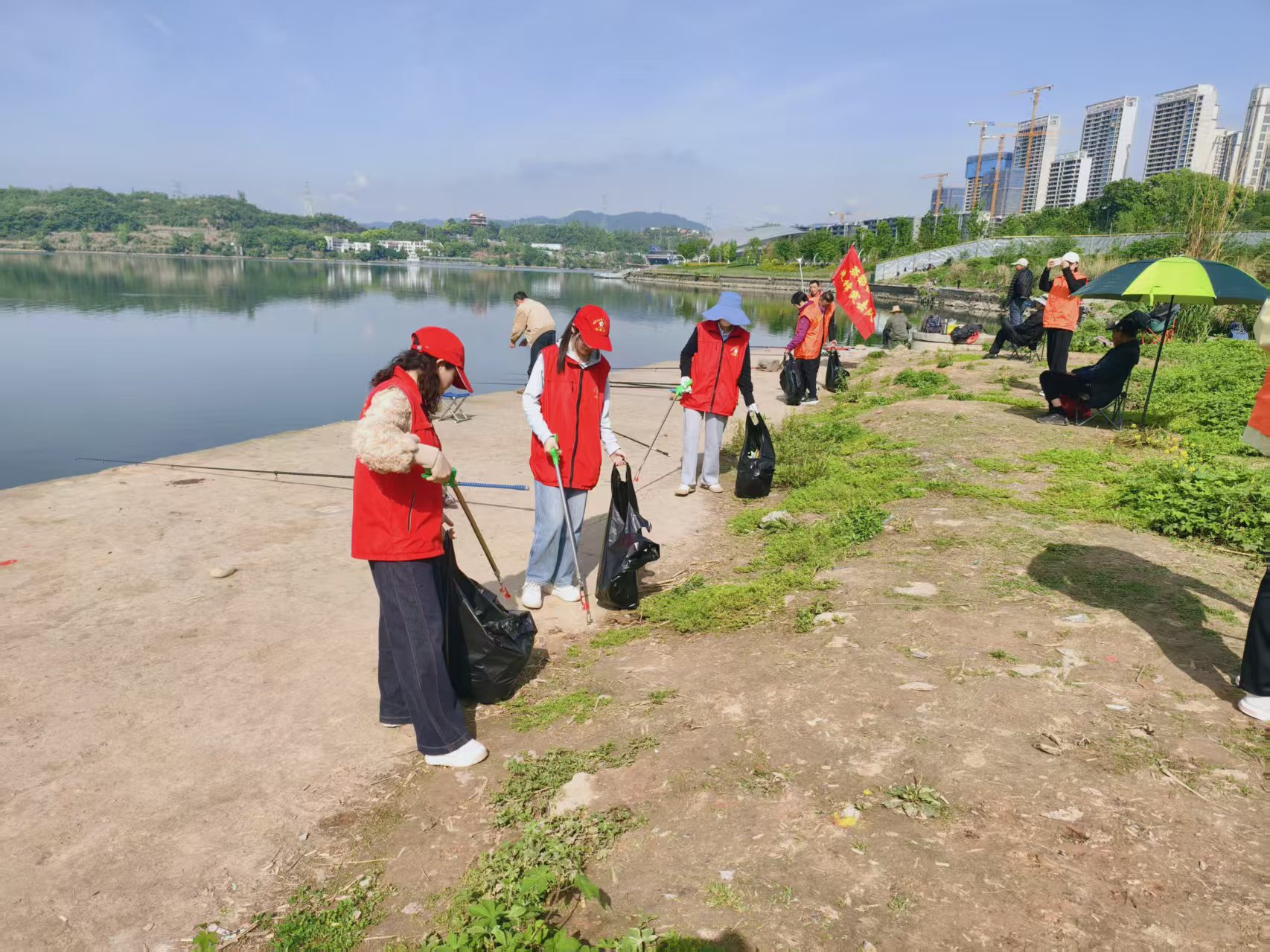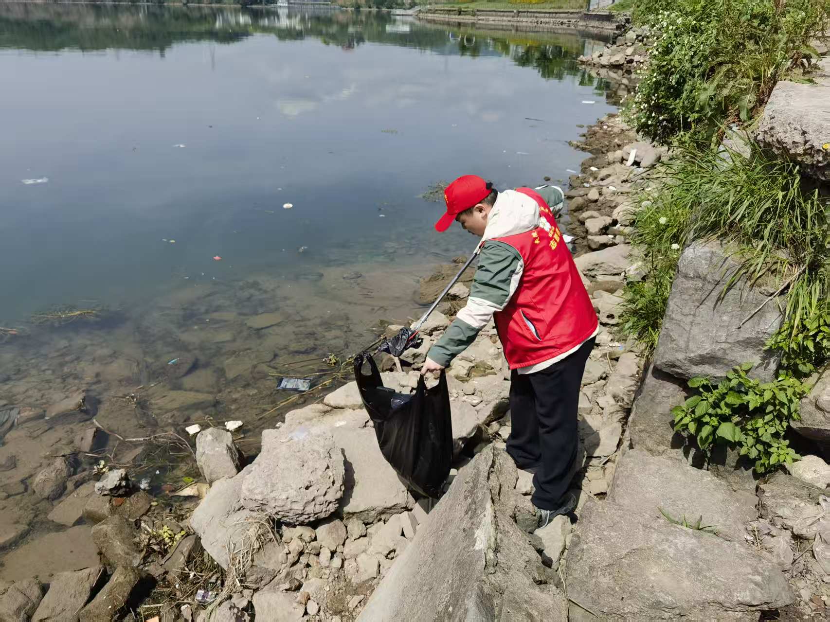 活动现场,志愿者们沿着河岸线分组行动,对河岸步道、亲水平台、绿化带及隐蔽角落的白色垃圾、塑料瓶、烟头、废弃渔网等进行“拉网式”清理,重点清除了埋藏在泥沙和草丛中的顽固废弃物。党员志愿者带头冲锋在前,物业工作人员分工协作,社区居民志愿者热情参与,形成了“党建引领、多方联动、全民参与”的良好氛围。经过数小时的努力,共清理各类垃圾数袋,岸线环境面貌焕然一新。
