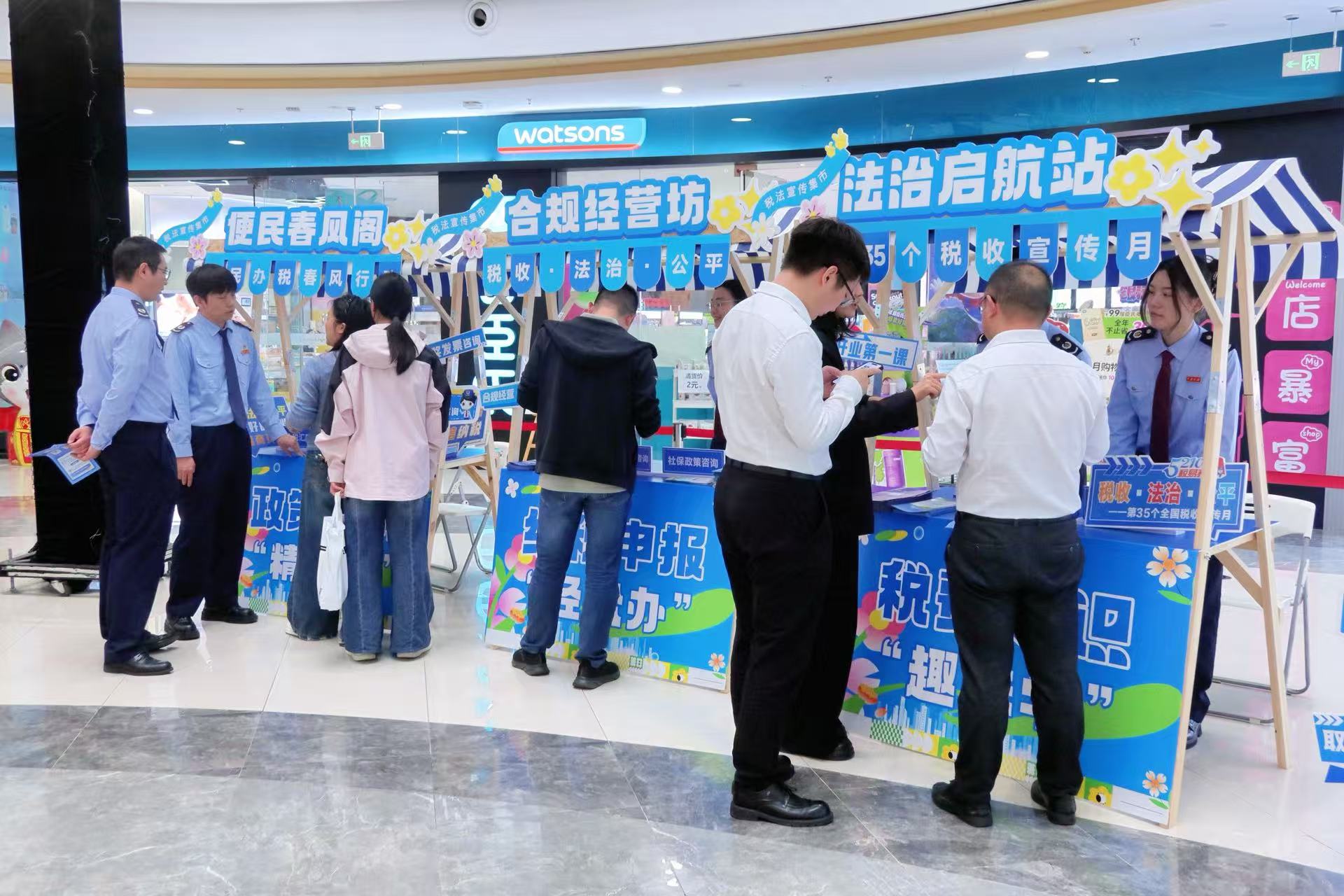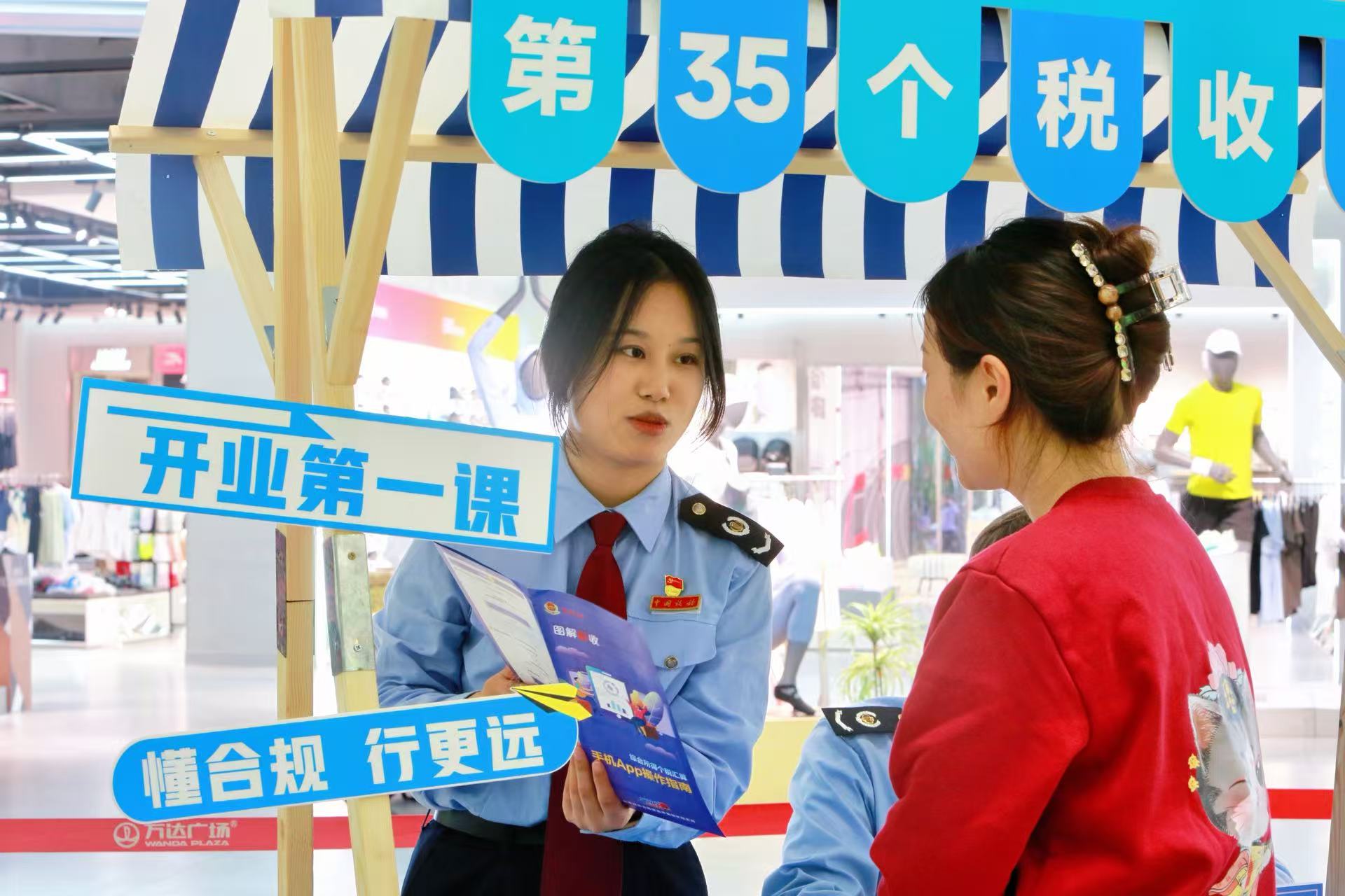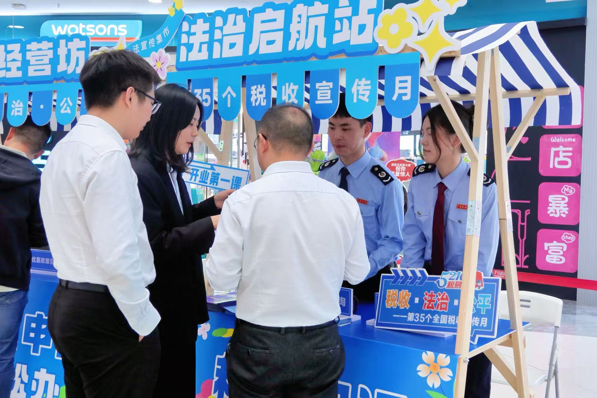 2026年4月是第35个全国税收宣传月,为持续普及税收法律知识,提升公众“合规经营、诚信纳税”意识,深化便民办税服务举措,4月24日下午,夷陵区税务局紧扣“税收·法治·公平”活动主题,联合夷陵万达广场,开展税收普法进商圈宣传活动,通过搭建“法治启航站”“合规经营坊”“便民办税阁”等税收普法小站,为商户、过往市民面对面答疑解惑。