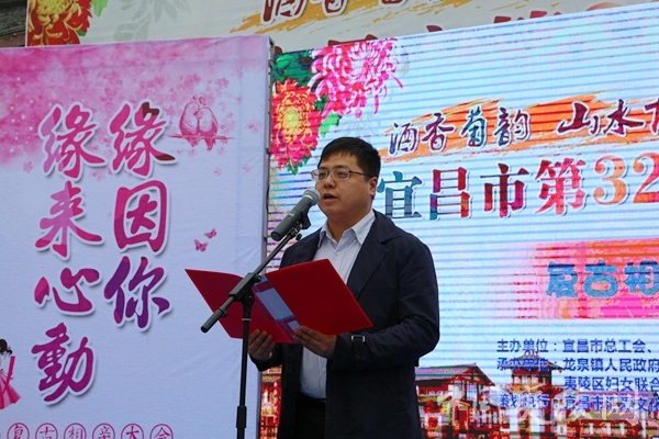 龙泉镇党委副书记张杰致辞。他说,随着生活节奏的加快,适龄青年择偶难已成为当今社会重要问题,举办复古旅游相亲文化活动,邀请年轻、富有朝气的有缘人相聚在宜昌市第32届菊花展现场,旨在以菊花为媒,以古镇传情,为广大单身青年搭建一个展示自我的交流平台,在“酒香菊韵·山水古镇”中缔结友谊、收获爱情。