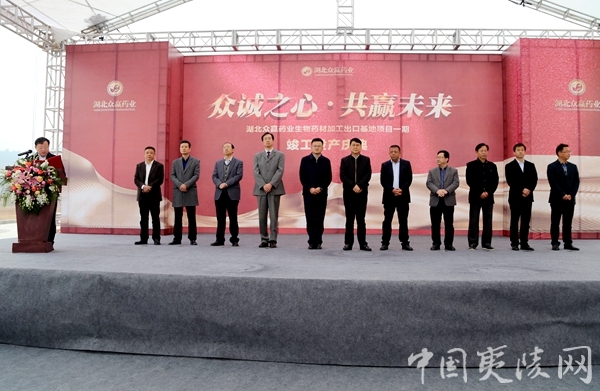 宜昌市人大常委会副主任、市新区推进办主任周青宣布项目竣工投产。夷陵区委副书记、区长王平昌主持竣工投产仪式。仪式上,湖北众赢药业有限责任公司分别与泰国桂林园中药材成药有限公司、台湾朝春集团公司签订生物药材加工出口订单,金额达1500万美元。