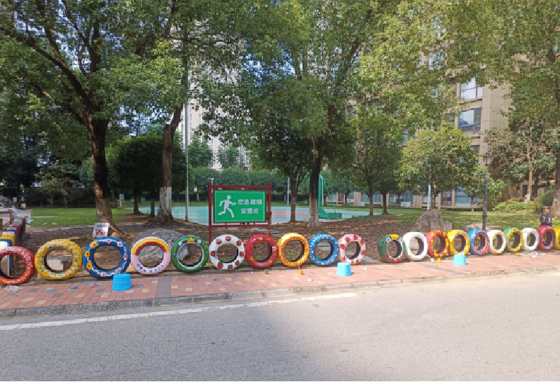 废旧轮胎摇身一变,创意涂鸦为小区焕新颜
